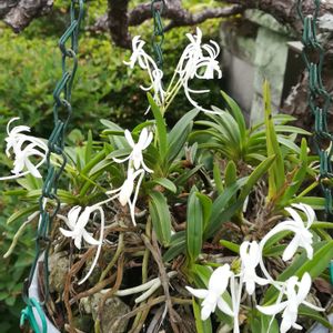 何年もほったらかしの風蘭に5本ほど花芽が出ていて今年も咲いてくれそう♪と楽しみにしていたのですが全てダメになってしまってました😭💦なぜたー😫 思いきって株分けしました(左下)