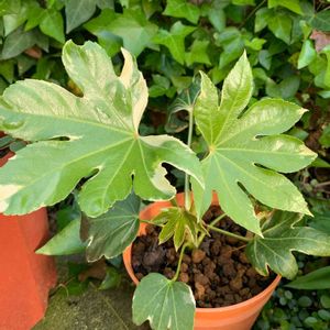斑入りのヤツデ、ようやく綺麗な葉が展開してきました🌱