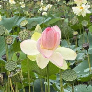 春不老(はるふろう) 中国武漢市において1982年に育成された品種… ハス品種見本園 東大農学部付属緑地植物実験所内 2025/8/3 撮影