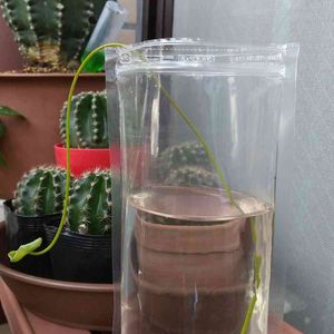 外に出して撮影しました📸 根が出てきました🧐 鉢に植え付けるのはいつ頃だろう? 枯らせないようにしなければ❣️
