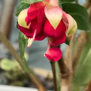 初めて夏越しできたフクシア。 買った時は葉色も薄くて、絶対無理だろうと思ってたけど、頑張ってくれました。 逆にいけそうと思ってたプー二ーはダメでした😓 なんか変な咲き方してるけど、よく頑張ったね❣️