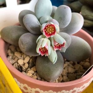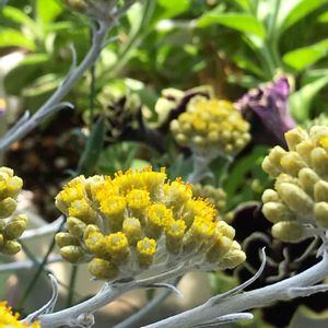 ヘリクリサム コルマ、咲きました❣️ 冬越しした黒真珠も、ようやく動きが 活発に。
