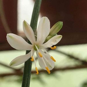 先日頂いたオリヅルラン。 花が咲きました☺️ 長いつるに蕾がたくさんついてます💕