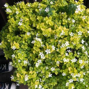 今日は朝から雨ですが☂️ 我が家の玄関先を明るくしてくれている 💚💛🤍バコパ ライムバリエガータ💚💛🤍 ホワイト🤍の小さなお花ですが 今が1番咲いてくれています💚💛🤍 ライムグリーン💚💛の斑入りの葉っぱ💚💛が とっても爽やかです😌
