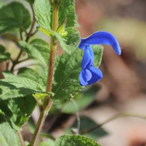 室内で冬越ししているサルビアパテンス💙 暖かい部屋の中で、いつの間にか咲いていました✨ ヒョロヒョロだけど、キレイだな😊