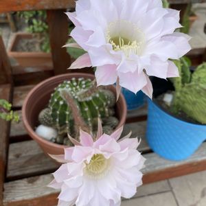 白い水曜日♡🏷️ 白い貴婦人✨🏷️ 毎月13日と14日は葉挿しの日🏷️ などで投稿させて頂きます♪ 昨夜はまたまとまった雨が降り 夜と朝の水やりどちらも やらなくて済み助かりました 雨もその程度に降れば 恵の雨と思えますのにね💦 それであまり外に出なかったのですが 今朝ふと多肉棚を見たら サボテンの花が 忘れた頃に咲いていました😍 しかも水曜日に合わせて 咲いてくれるなんて なんだか嬉しい♡ 2〜3pic目は 葉挿しの投稿になります 今年の5月にお迎えした ジョイスタロック 我が家で最初の夏になるので ちょっとハラハラ というのも斑入りなのでね💦 でも今のところは 母子共に元気そうです 葉挿しベビーもちゃんと斑入り 沢山増えて欲しいな〜🌱🌱🌱 この名前からいつも ジョックロックを連想してしまいます お笑いの方じゃなくて 高校野球の方です 「スタ」が中に入ると おはスタみたいな感じで ちょっと明るい響きになります …ってなんのこっちゃ😅 こちらの地方は 今日からお盆で 仏壇にも鬼灯を飾り 義父が大好きだった 栗の和菓子を供えました ほんの数日 本当に亡き人の霊が 帰って来てくれているといいな 古くからの風習は 大切に守っているんですが 正直帰って来ているとは思えてなくて 本当のところ どうなんでしょうね