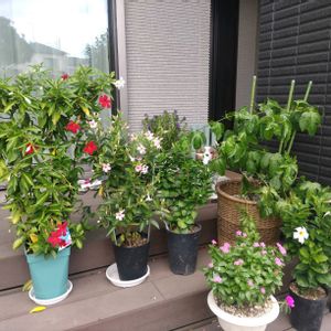 ウッドデッキには半額のサンパラソルが並んでいます。最近また咲き始めので楽しみの一つです。