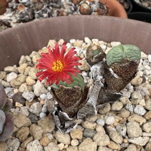 こんばんは🤗 コノフィツムさん咲いてました💕🌸🎊✨ 小さくって可愛いお花です🌸✨✨ からだを半分出したまま、休眠していましたが、目を覚ましたようです。:°ஐ..♡*🥰 𖤣𖥧𖥣。𖥧𖧧𖤣𖥧𖥣。𖥧𖧧𖤣𖥧𖥣。𖥧𖧧𖤣𖥧𖥣。𖥧𖧧𖤣𖤥𖠿𖤣𖤥