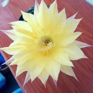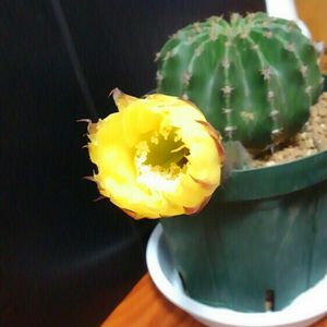黄花短毛丸二号、開いて来たー! いつもは夜中の二時半頃に満開になるのに、今回は早い