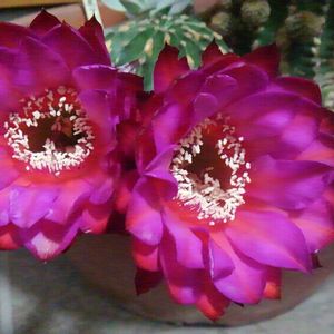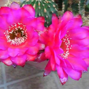 おはようございます、起きたらすぐにサボテンに直行。あれ?今まで育てたロビオプシス達と花びらの形が違うぞ?? と言うかなにこの色輝いておられるー! \(^o^)/ 昨日のあれでほぼ満開のようでしたが、色が鮮やかになりました。植物の神秘😆✨