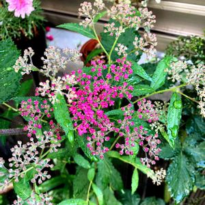 鉢植えのシモツケが咲きだしました✿ 小さな蕾が開いて,花色が徐々に変化していく様子が面白い❤