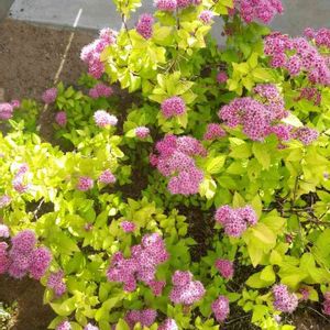 葉が黄金色のしもつけ。このお天気で あっという間に 満開です。