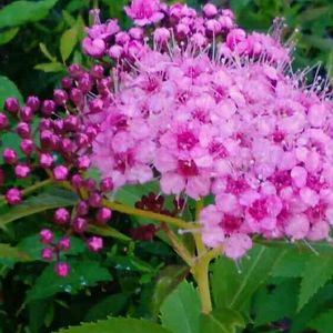 挿し木から育てたシモツケ 濃いピンク色の蕾 咲くとまた可愛らしいね💕