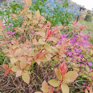 黄金シモツケ ゴールドフレームの若葉。 紅葉でもあかくなりますが、春に芽が出る時も赤く染まっていて葉が徐々に緑になります。