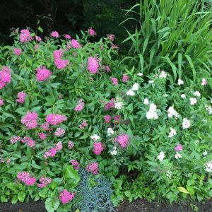 濃いピンクが目立っていました シモツケに似ているけれど⁉️ お花が小さい🥲 シモツケでいいみたいです ありがとうございました🥰