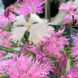 今日のお花🌸 河原撫子💕 冬を越して、どんどん伸びた河原撫子 一通り咲き終わった後に切り戻し✂️ また、新しい目が出てきたよ❣️ 切り込みの深い花びら 涼しげで大好き💕