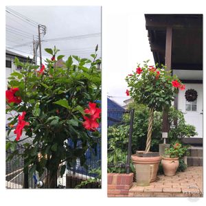 どなたかのページでハイビスカスの話が出たので 写真を探してみました😁 2018年の写真を見つけましたよ 冬場は家の中です、3月ごろには外に出しますが 肥料をあげないでいると花が小さくなってしまい あっごめんごめんといいながらあげます もう長い付き合いです🥰