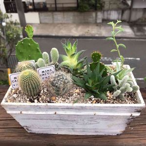 こんにちは きょう ここで教えていただいた池袋の西武の 屋上の 鶴仙園 という多肉サボテンのお店に行ってきました、携帯を家に置いて出掛けてしまって💦お店の様子はありませんが 2つだけgetしました。 サボテン、アガペ などたくさんあってこんなのがお玄関にあったら素敵だなぁと思ったら お値段は 40000円でした。 素敵なお年を召したご夫婦が選んでらっしゃいました💕 うしろはいつも元気なミロッティさん❗️ 鉢をペイントしました。
