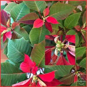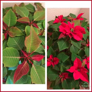 おはようございます✨ 家の中に入れた✨ポインセチア✨ 左は11月12日.右は今日12月19日です。 今年は順調に成長して 蕾も付いているので うれしいです。 もう新聞紙をかけることもしていません 緑の葉もたくさんあるのでボリュームがあって 持て余し気味💦 暖房の部屋には置けないし💦 来年は もっと刈り込んで小さく仕立てて みましょう😅