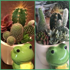 こんにちは 友人にあげた カエルさんの寄せ植え🐸 仕立て直しました こんな小さな鉢には葉挿しの子が役立ちます❣️