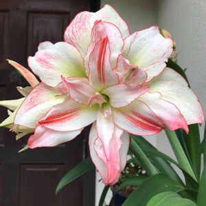 おはようございます☀ 友人の家の✨アマリリス✨です。 まぁあ と口をあんぐりしてしまうほどの大きさ と八重九重の花びらの重なり⁉️ 友人によれば 1年目が終わったら大きめの鉢に 植え替えたらそのまま!毎年1球づつ増えても そのまま、たまに肥料をパラパラだそうです。 この子は直径25センチくらいあり 圧巻❣️ お見事❗️でした❣️ 球根って蘭もそうですが 鉢の中でぎゅうぎゅう になると本領発揮❗️みたいですね。