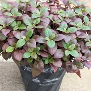 🌿アルテルナンテラ リトルロマンス🌿 PW ✨直射日光にもへっちゃら ✨カラーリーフがおしゃれ グラデーションが素敵🫶 温度が下がるにつれてどんどん パープルカラーになります🎶 ハンギングなので、背丈を低めにと葉の先をよく✂️してます‼︎ 挿し芽も簡単につきます❣️ 葉っぱの裏側に赤紫色あり✨ これからの葉っぱのカラー変化が楽しみです💕 明日はやっと恵の雨☂️が降りそう お水やり休めるかなぁ😄