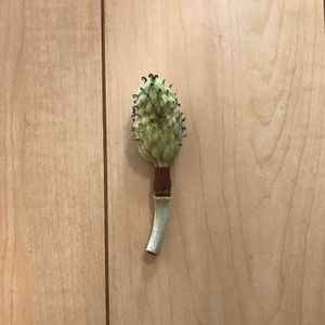 おはようございます👋😃 散歩で集めたタイサンボクの実。小さい物はリースに使おう。大きめの物は・・・⁉️ 実の形見て、そうだ😃💡 ウリボウ🐗にしよう🤭⬇️ 耳を付けたら😅ネズミ🐭みたいになっちゃった🤣⬆️ タイサンボクの実、何か思い付いたら教えてください🙏します