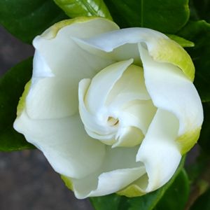 ᰔᩚ ᥫᩣ クチナシ 八重咲き 一輪開花です✿゚❀.(*´▽`*)❀.゚✿ 今日もよか一日に♥(*´꒳`*)ヨキヨキ🍀🌸