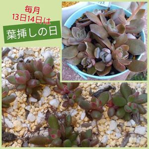 こんにちは☀ 今日はmakimayちゃん&みらいちゃんの🏷毎月13日14日は葉挿しの日に参加しま〜す🤗 右上は葉挿しから育てたロスラリスです💜 そして下の子なんですが名無しさんです😣 このつぶつぶちゃん誰かわかりますか?