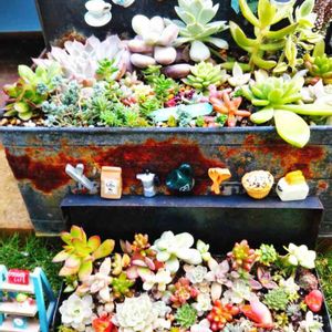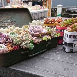 先日作った寄せ植え💕念願の工具箱寄せ😍ちゃんと根付きますように😌