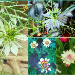 🏵️DAISO ワイルドフラワーATガーデン🏵️ 1袋100円のプレミアムシリーズのミックス種からの開花💗 (7/19~25の様子) ニゲラ、今度は本当の白と、ブルーが咲きました😄 ハナワギク、なぜかしら花弁ボロボロ😶 ヘリクリサム(ムギワラギク・帝王貝細工)も蕾が😍 かなぁ~り楽しませてくれるDAISO プレミアムシリーズのミックス種 嬉しい開花です💓 おまけ…33℃になると黙ってても、皮膚が湿るのね😂 なかなかの風、無風だったらどうなるんだろ😂 今日はまだ上がる⁉️