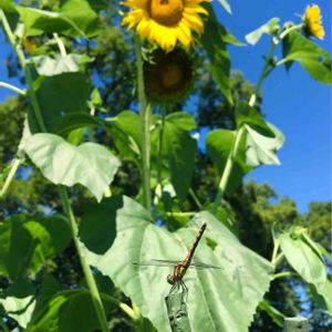 おはようございます😃 写真撮影可 遠慮なく畑に入って良いですよ の看板があったので、 畑の中まで、お邪魔しま〜す。 トンボが主役のひまわり🌻畑