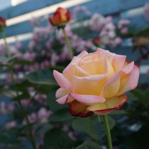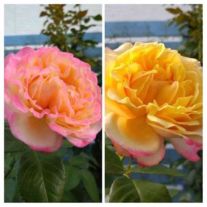 おはようございます! コルデスジュビリー、最初の一輪が咲きました〜(^^) イエローからピンクへの色変わりが素敵です🌈