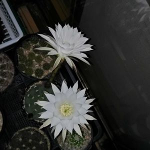こんばんは🤗 今年も、純白で美しい大輪の花を見せてくれましたよ🎊🥰✨ 示し合わせたかのように、二つ同時に咲いてくれました🎊🌵🎉🌵💖
