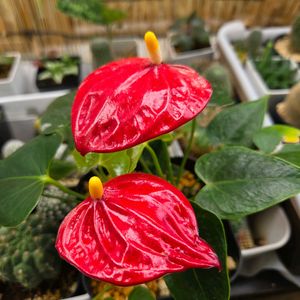 7月上旬の記録➀アンスリウム、購入時は桃色でした。🩷が良かった😆②③④➄大豪丸3号、初開花。2021年固まる土から解放。現在1号、病気がなおらず、4号この春どう切り、今だ発根せず、5号いつの間にか行方しれず。2号と3号だけ開花になりました。みどりのまとめより。