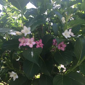 散歩路 いつもの池の周りに 箱根空木が咲いてきました 🍀ハコネウツギ スイカズラ科 ハコネウツギ属
