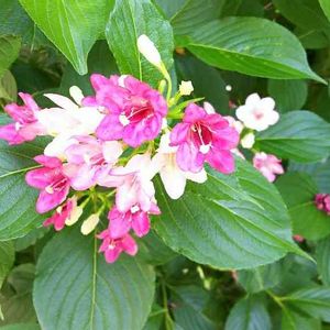 何の花でしょうか? あじさいの隣に咲いてました。やはり紫陽花の種類でしょうか?教えて頂き、 ハコネウツギと分かりました。調べると、スイカズラ科 別名ベニウツキ。カラフルで綺麗だと思ったら、白い花が段々と赤くなるそうです。