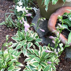 💜超ミニのギボウシ (ホスタ)の花が咲いたょ 🤍白いアッツ桜もまだ咲いてるょ こちらも昨日梅雨入りしました