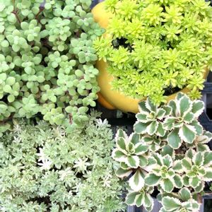 葉挿しの白牡丹とセダム色々( ੭ᐢᗜᐢ)੭ (੭ᐢᗜ゜)੭