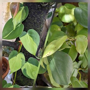 右のは枯れてるのではなく新しい元気な葉っぱです🌱 なんとなく綺麗な模様になりそうです💕 ポトスみたいな感じで育てれるらしいです。頑張ります🐣