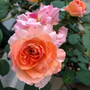 左→薔薇 アルカーナ 右上→薔薇 パウルクレー 左下→薔薇 かおりかざり 今朝の薔薇です✌️ たまたまですが、オレンジ系の薔薇が咲き揃いました😄 今も綺麗ですが、これから気温が下がりどんな顔で咲いてくれるか楽しみですね😄😄