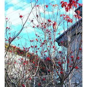 Red Fruits & Blue Sky 🍒🍂🌳🌤️😃 ちんちん電車遊歩道のハナミズキ。落葉がほぼ終わり、赤い実が青空に映える。🍒🚶 何本ものハナミズキが植えられ、散歩する皆さんを、一年中楽しませてくれる。🚶😌 のんびり歩く皆さんを癒してやってよ。ヨロシコ❗👍👍🍒🍒🍂🍂🚶🚶😌😌👻👻