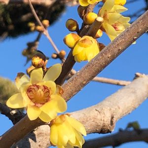朝から快晴風も無く暖かい1日✌️🎶 うちのロウバイのシベ赤くて可愛い💕