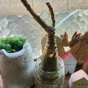 アデニウム 気がついたら 葉はなくなり、幹もしわしわ💦 (ぶよぶよではなく、干からびた感じ) ごめんね~ 慌てて水耕にして一週間🥤 幹に張りが戻りました🌱 根っこも新しいのが出たので、サボテン用の土で植え替えました🌵 ほっ…(*´-`)