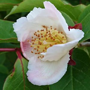 シャラの木は別名ナツツバキと呼ばれる。 ナツツバキの名の由来は葉や花がツバキに似ていて開花の時期が夏である事からきています。 ツバキ科ナツツバキ属
