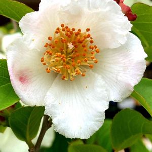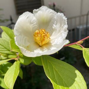 ナツツバキ🤍🌿 ツバキ科の落葉高木。 樹高は5〜7m🌲 10m以上になることもある高木のようです😃 6月頃に 花径5〜7cmの白い花を咲かせる。花芯部は黄色。 今日 6/4 京都市東山区 建仁寺塔頭 正伝永源院にて📱