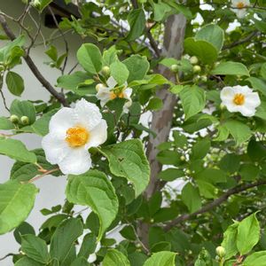 夏椿がいつの間にか咲いています。 毎年息子の誕生日の6月10日頃が見頃なのですが、いつもの年より少し早いです。 今年は、コンパクトに剪定し仕立てたので、花がキュッと集まって咲いてくれました。可愛い😍💕