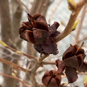 今日は青空が気持ちの良い日です。 夏椿の枝に昨年の花殻と今年の新芽を見つけて季節の移ろいを感じています♪