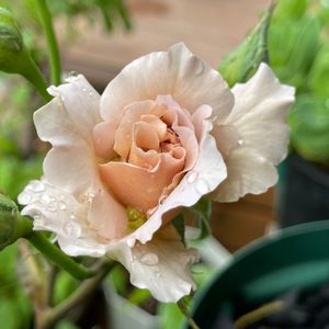 昨日の開ききったジュリアの蕾。 ケーキのクリームのようなバラが好き🎶