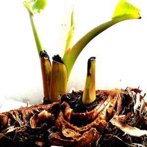 極楽鳥花 ストレリチア ノンリーフ ユンケアとかジャンセアと言われています 前回は昨年9月に花芽を確認して 今年4月に開花しました。 その後株分けして 今年は無理かと思いましたが 花芽が出てきました。 左が花芽で右が新芽です。 これはオレンジ色の花が咲きます。